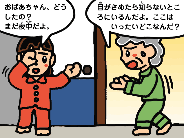 おばあちゃんといっしょにしばらく起(お)きている