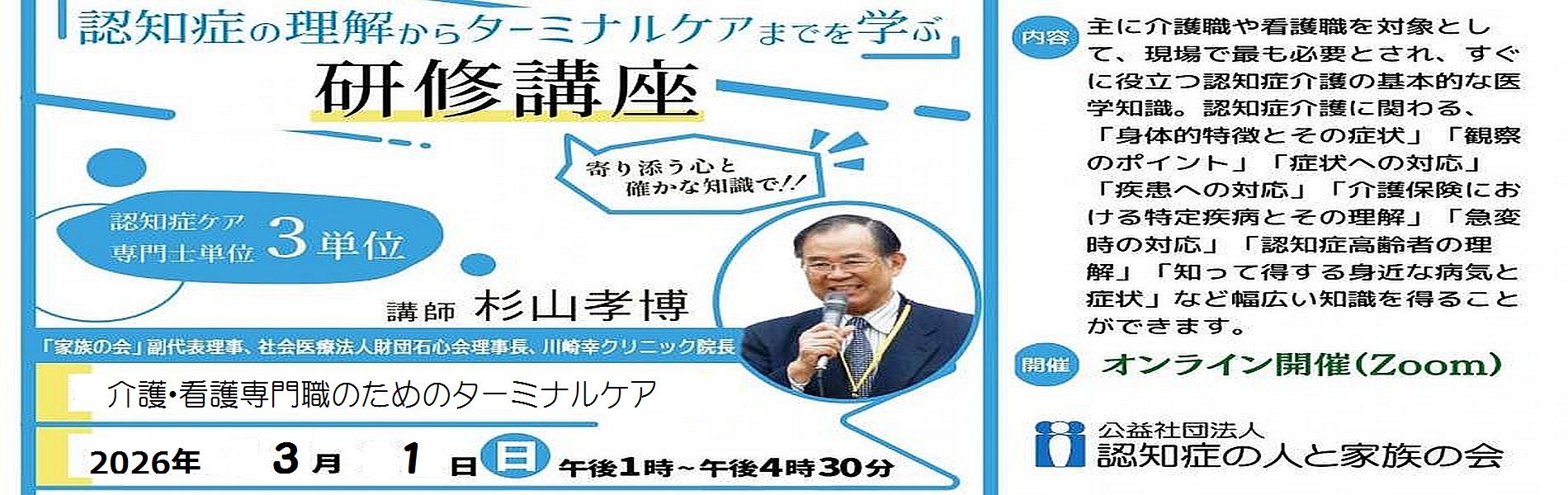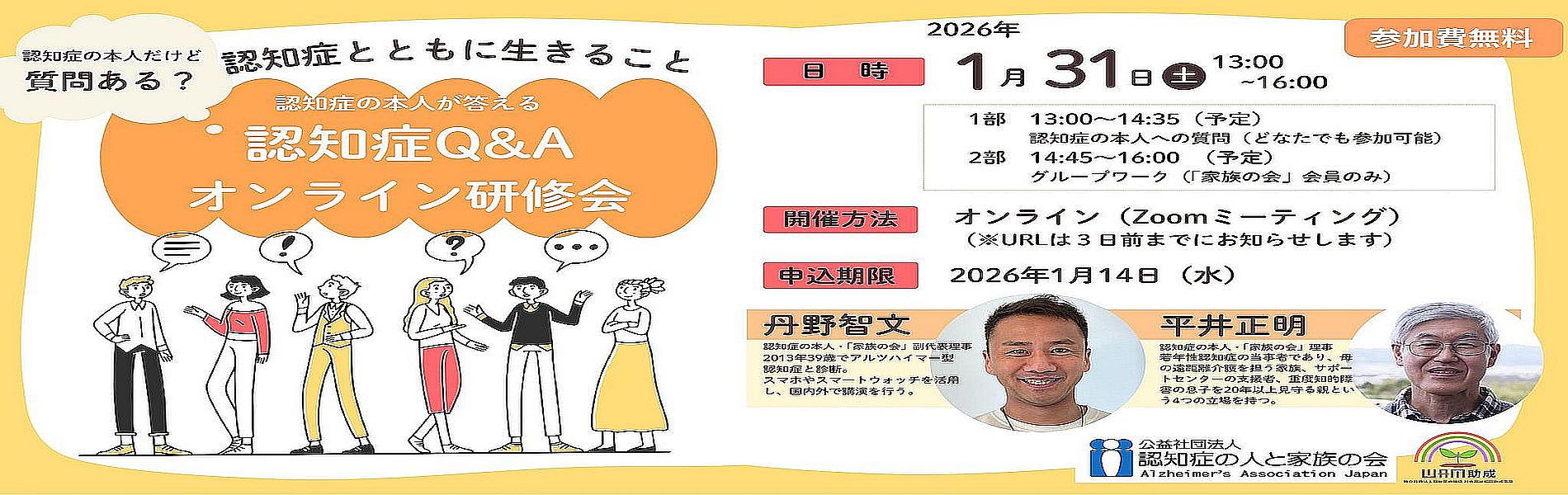 2025年12月12日 / 最終更新日時 : 2025年12月31日 「家族の会」本部事務局 活動 認知症とともに生きること|オンライン研修会【参加費無料】 認知症の本人が答える認知症Q&A オンライン研修会 🌻 認知症とともに生きること:オンライン研修会 💻 🗓️ 日時 🎤 講師 (認知症の本人) […]