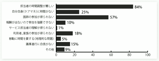 サービス担当者会議の開催を困難にしている要因として、どのようなことが考えられますか?「家族の会」の「介護保険制度改正への提言」について、各界の方から注目する項目について述べてもらいます。
