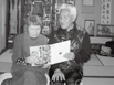 千葉県支部の青津優子さん(左)の落語「まんじゅうこわい」の絵本読み聞かせ、隣は夫の彰さん