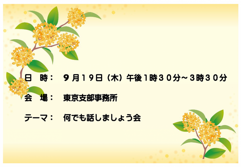 2019年7月6日 / 最終更新日時 : 2019年7月25日 東京都支部 会報ぽ~れぽ~れ 9月の会員のつどい こんな記事も読まれています。9月の会員のつどい あなたも「家族の会」の仲間になりませんか?無料で資料をお送りします。