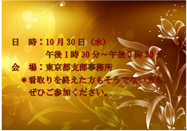 つどい、交流会、講習会、公開講座2019年10月・11月の予定