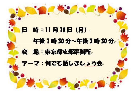 つどい、交流会、講習会、公開講座2019年10月・11月の予定