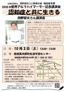 当会では、1994年世界アルツハイマーデー制定以来、既に25年にわたり認知症の普及啓発活動に取り組んでおります。家族の会は特別な人々の代表としてこの席にいるわけではなく、誰でもが私と同じ立場になる可能性大と捉えていただき、今一度自分事としてこの機会を利用し、認知症の理解を深め、正しい知識を学び、介護家族と本人への支援を考えていただきたいと願っております。 以上