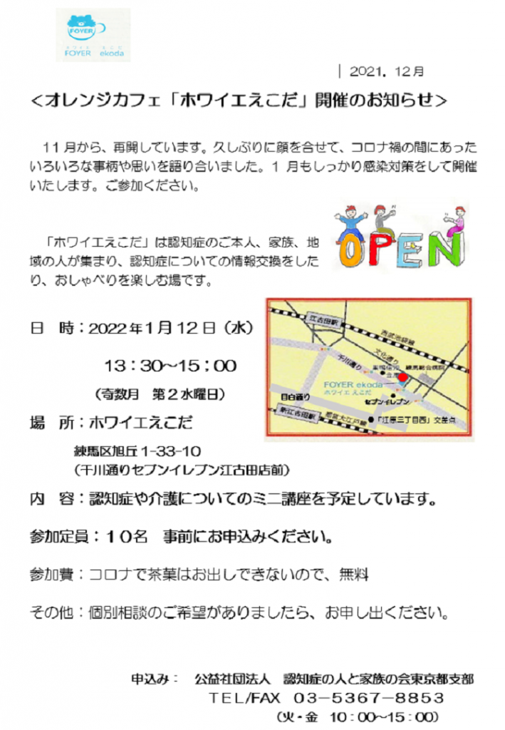 2021年12月20日 / 最終更新日時 : 2021年12月20日 東京都支部 全国のつどい 1月12日 水曜日 ホワイエえこだ開催 あなたも「家族の会」の仲間になりませんか?無料で資料をお送りします。