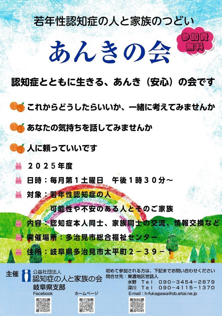 若年性認知症の人と家族のつどい『あんきの会』 12月のお知らせ
