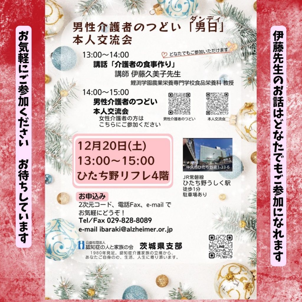 #認知症 #若年性認知症 #認知症介護 #認知症カフェ #介護者のつどい #認知症マフ #牛久市 #龍ケ崎市 #土浦市 #つくば市